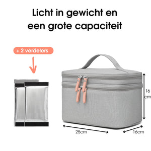 Of je nu onderweg bent, aan het werk of even geniet van een moment voor jezelf, deze koeltas zorgt dat jouw melk altijd op temperatuur blijft. Zonder gedoe, zonder zorgen.